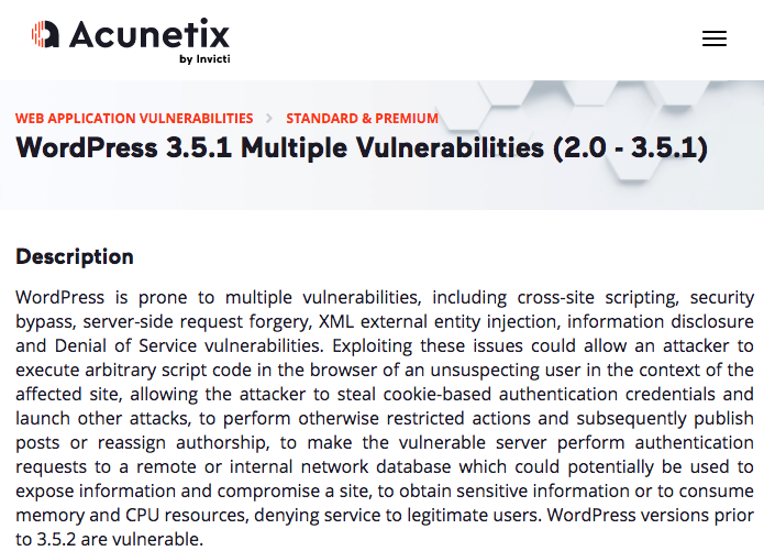 As you can see above, your company website uses WordPress 3.5.1, which is a very old version of WordPress (released in January 2013).